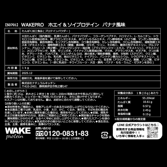 50701 WAKEPRO ホエイ&ソイプロテイン バナナ風味国内製造1kg
