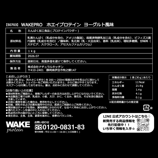 50703 WAKEPRO ホエイプロテイン ヨーグルト風味国内製造1kg