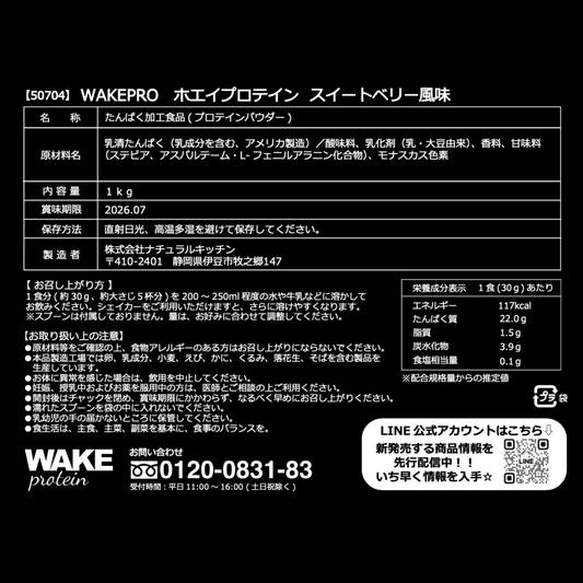 50704 WAKEPRO ホエイプロテイン スイートベリー風味国内製造1kg