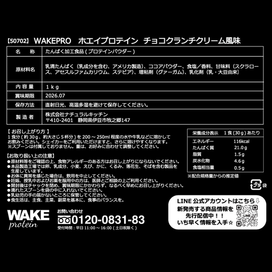 50702 WAKEPRO ホエイプロテイン チョコクランチクリーム風味国内製造1kg