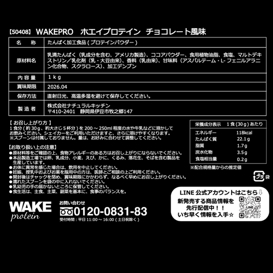 50408 WAKEPRO ホエイプロテイン チョコレート風味国内製造1kg