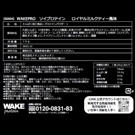 50504 WAKEPRO ソイプロテイン ロイヤルミルクティー風味国内製造1kg